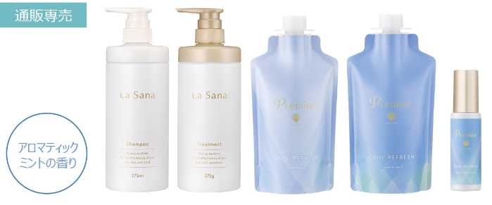 『ラサーナプレミオールクールリフレッシュ』は、シャンプー375ml(詰め替え用)3,300円、トリートメント375g(詰め替え用)3,850円、ヘアエッセンス65ml2,860円(税込)。
