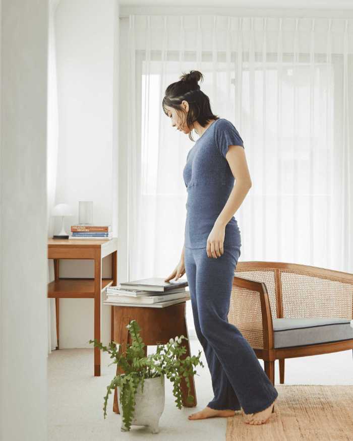 上下セットでしっかり冷え対策。おうち時間やリラックスタイムにもぴったりです。