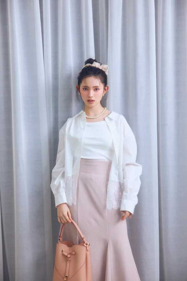 裾レースドッキングシャツ
