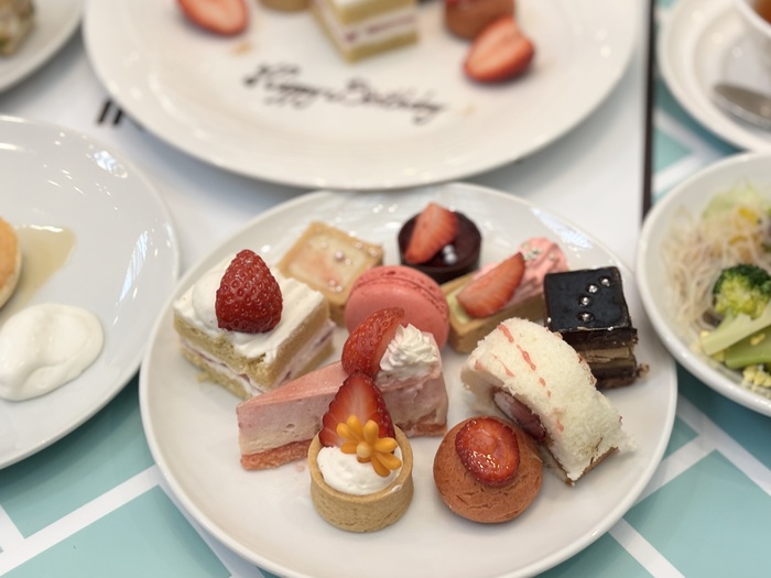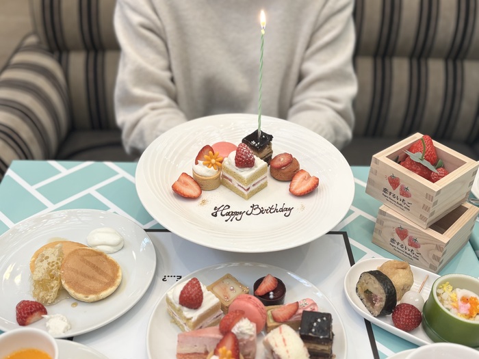 サプライズにぴったり!追加オプションでメッセージプレートを用意いただけます。この日は、お友達のお誕生日だったので、ビュッフェのスイーツやお料理を楽しみながら、お誕生日のサプライズを計画しました。