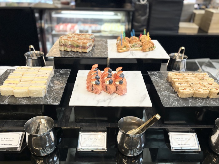 セイボリーには、種類豊富なサンドが6種類。珍しい和テイストの「出し巻き玉子サンド」や、ジューシーな「白身フライのサンド」など、和風・洋風はお好みをチョイスしてお皿に盛り付けます。