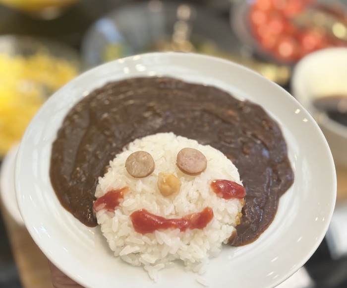 楽しみにしている「カレー」この日は「なにわの牛すじミンチカレー」。コクのあるカレーには、ゴロゴロと柔らかなすじ肉、盛り付けもビュッフェの恒例の楽しみになっています。