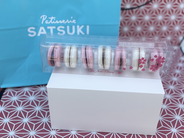ピンクと白の春の桜をイメージする「新桜マカロン」。あんこフレーバーに、桜の塩漬け、博多あまおうのコンフィなど厳選された春の素材を使用した特別な一品。