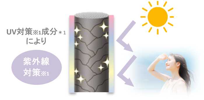 まず晴れの日対策として、UV対策※1成分*1を配合し、外出時の髪と手肌を360度バリア&コート。紫外線による乾燥から守り、ツヤ髪のベースを整えます。