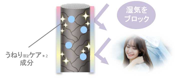 さらに雨の日対策として、撥水うねり※2ケア成分*2やナイアシンアミド*3を配合。湿気や水分を弾きながら髪のうねり※2を補正し、まとまりのあるスタイルをキープします。
