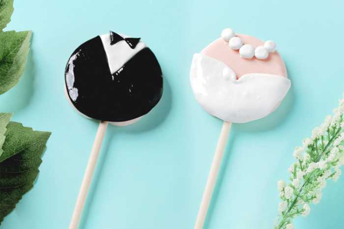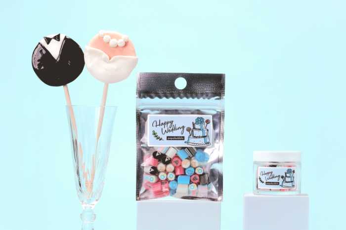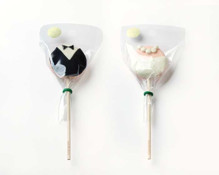 前撮りやウェディングフォトを華やかに演出するロリポップも登場。新郎新婦をイメージした「タキシード」「ドレス」デザインは、写真映えする可愛らしいキャンディです。
