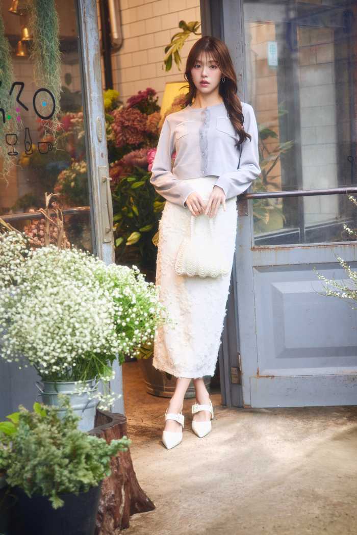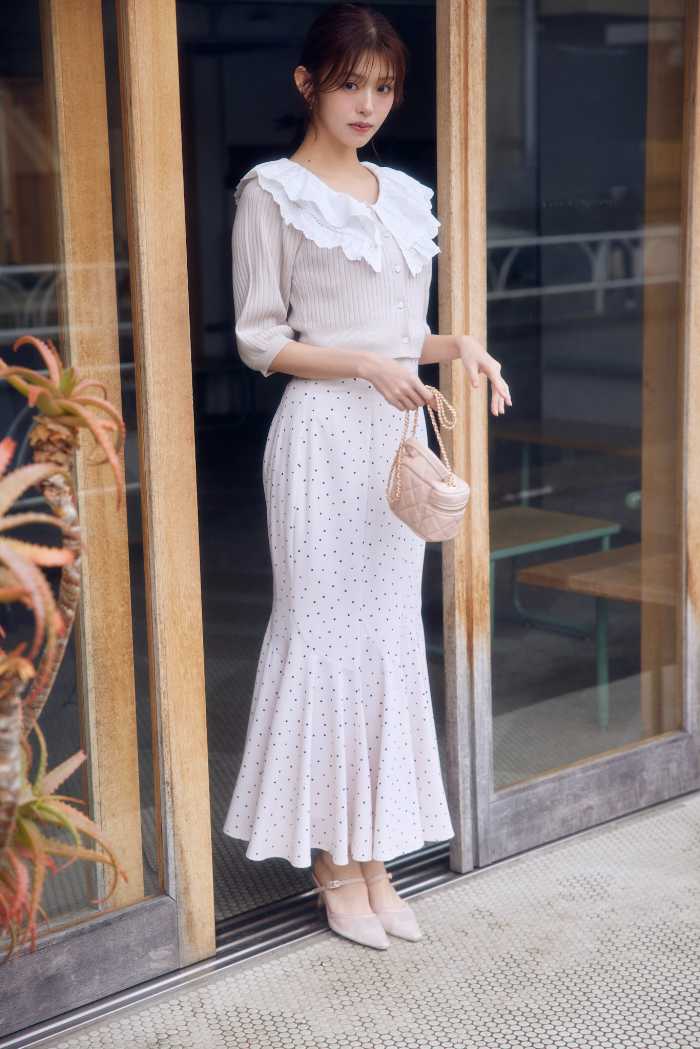 LOOK2ではCARDIGAN(7,590円)とSKIRT(9,900円)のシンプルながら上品なスタイルが登場。