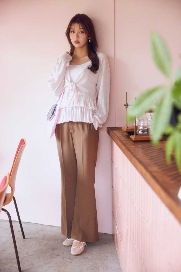 LOOK11ではJACKET(14,300円)、BLOUSE(9,790円)、PANTS(10,890円)の洗練されたパンツスタイルを披露しています。