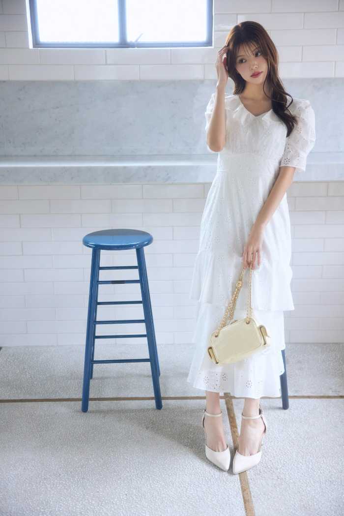 LOOK7はBLOUSE(8,690円)とONE-PIECE(14,300円)のレイヤードコーデ。