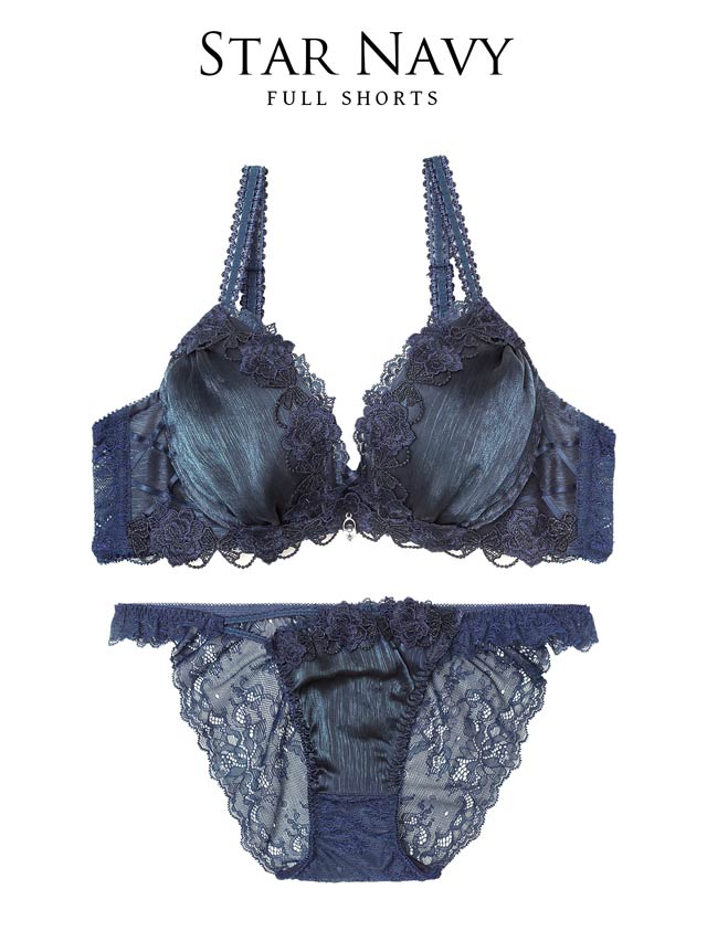 夜空に輝く星をイメージしたロマンティックなランジェリー。艶感のある楊柳シフォンとラメ入りケミカルレースが組み合わさり、デコルテを華やかに彩ります。