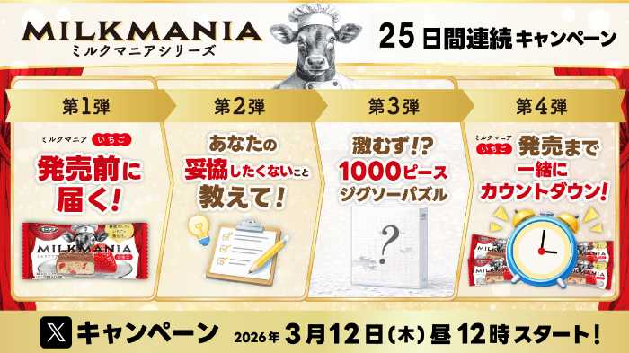 シリーズ展開の第一弾として登場する「ミルクマニアいちご」は、ブランドの象徴でもある“濃いミルク感”に、甘酸っぱく華やかな“いちご”の味わいを組み合わせた新フレーバーです。