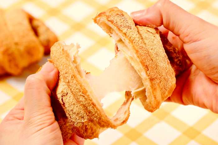 クロワッサンのサクサク食感と餅の弾力、チョコやきなこの甘みが同時に楽しめるフレーバーです。
