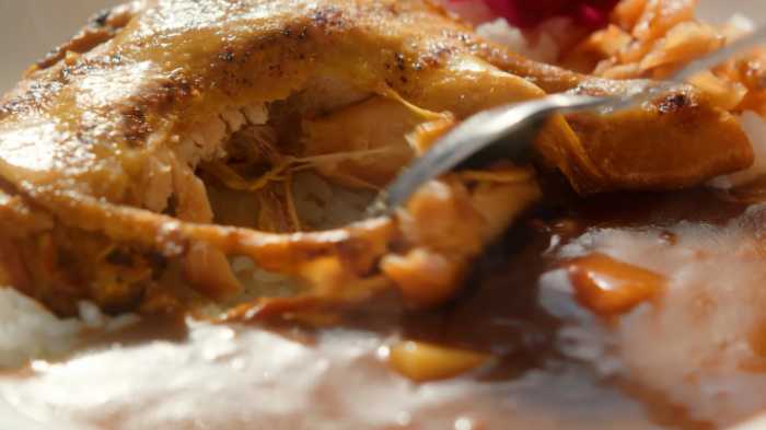 チキンは炭火で焼いたあと丁寧に蒸し上げることで、スプーンでほろっとほぐれるほどの柔らかさに仕上げています。