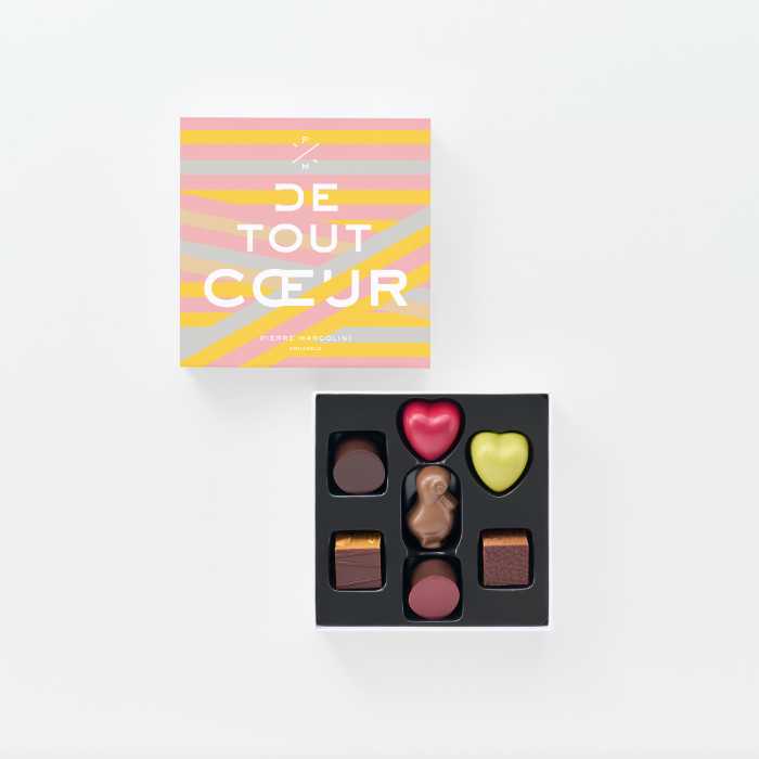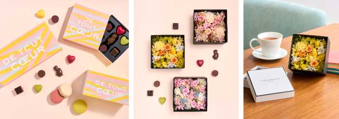 春のギフトコレクションでは、「de tout Cœur(心を込めて)」のメッセージをあしらった限定パッケージに、ブランド人気のスイーツを詰め合わせたアイテムが登場します。