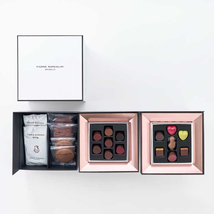 ピエールマルコリーニこだわりのショコラと、クーベルチュールを使用した焼き菓子をセットにしたスペシャルボックス。ブランドの世界観を存分に味わえるギフトです。