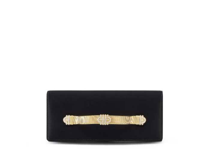 ハンドルには、ブルガリの象徴的な金細工技法「トゥボガス」を再現。88個のジルコニアストーンが施されたパレンテシモチーフが輝く、ジュエリーのような存在感のクラッチです。