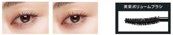 ボリュームタイプは美束ボリュームブラシで束感を自在に調整し、重ねてもダマになりにくい立体まつ毛を演出します。