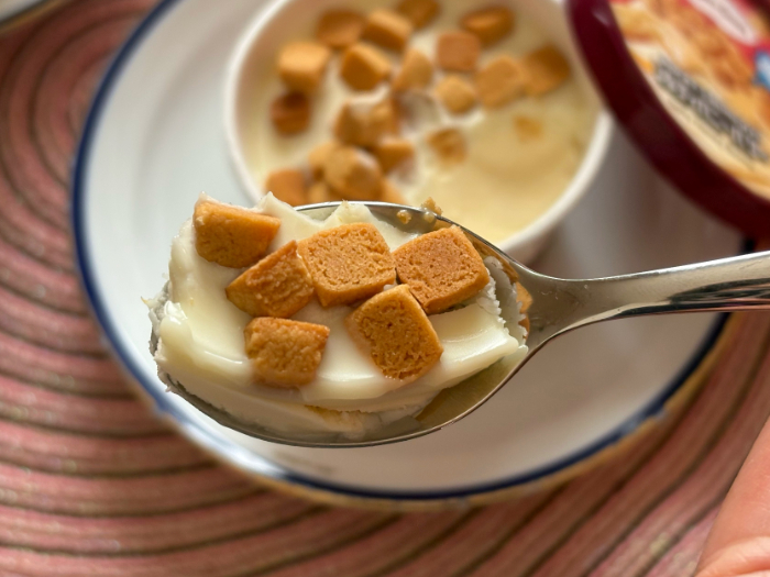 ベースのアイスは、バタースカッチアイスクリームで、中にハニーソースを混ぜ込んでいます。ハニーソースは、塩味を引き立てるために、レモン果汁を加えているだとか。