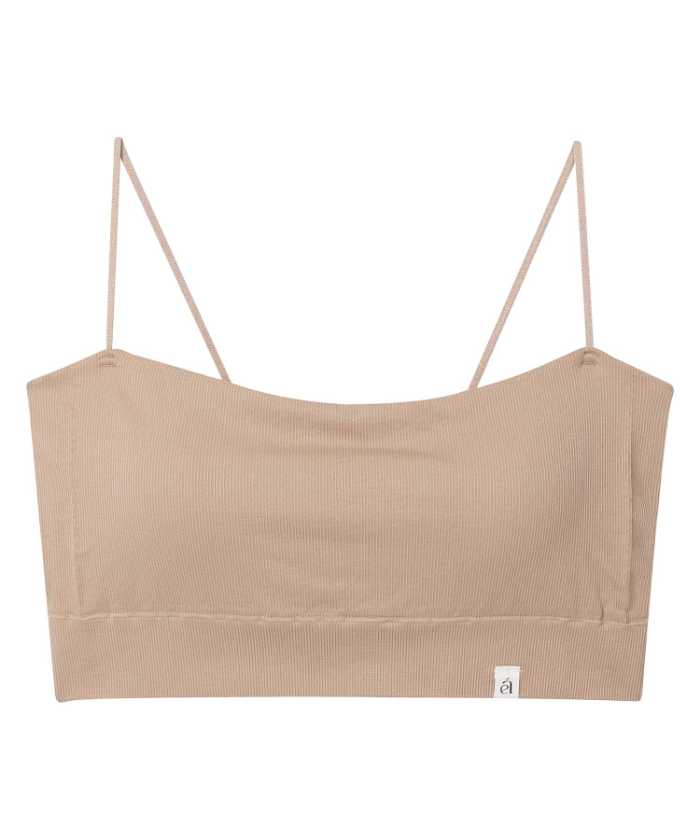 ほどよい厚みと伸縮性のあるリブ素材が心地よくフィットするバンドゥキャミソール。取りはずし可能なピーナッツ型パッドを内蔵し、ヘルシーな印象の胸もとラインを演出します。