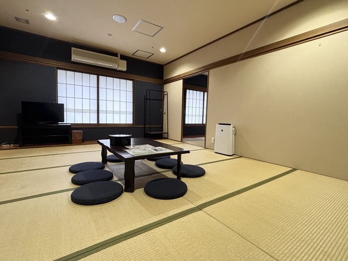 大浴場と同じフロアに位置する、最大8名様まで宿泊できる和室は、ご家族三世代での旅行やグループでの宿泊が可能。お布団を並べて大人数で一緒におやすみいただけます。