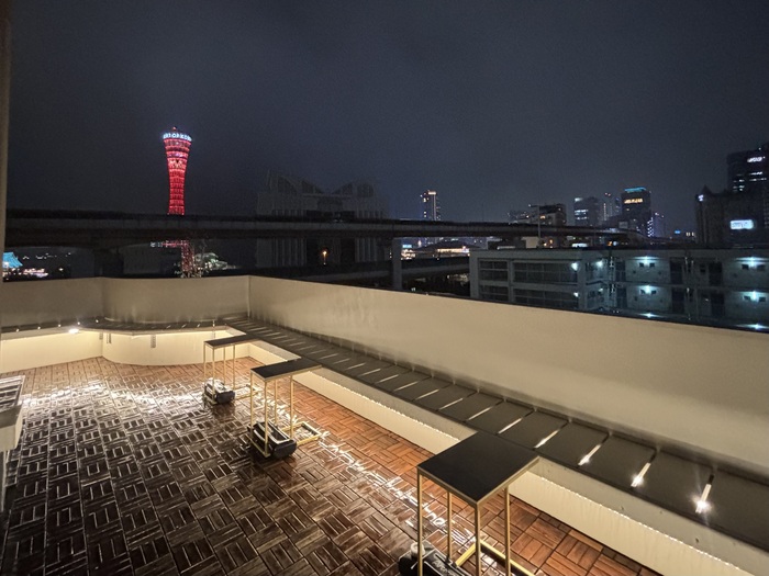 ホテル最上階13階「HIDE OUT」にて朝のコーヒータイム、カウンターにて無料のコーヒーやソフトドリンクが用意されています。神戸ポートタワーの景観を望む圧巻のパノラマを独り占めできる特等席。