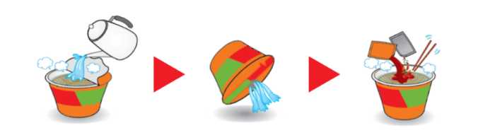 1.フタをすべてはがし(湯切りはしません)、液体ソースと粉末スープを取り出す。