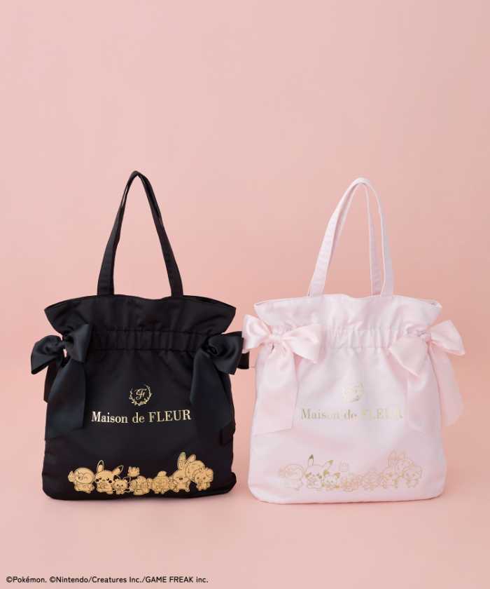 Maison de FLEURを象徴するダブルリボントートに、ポケピースのポケモンたちを箔プリントで表現。存在感のあるリボンとアートが大人可愛い雰囲気を演出します。