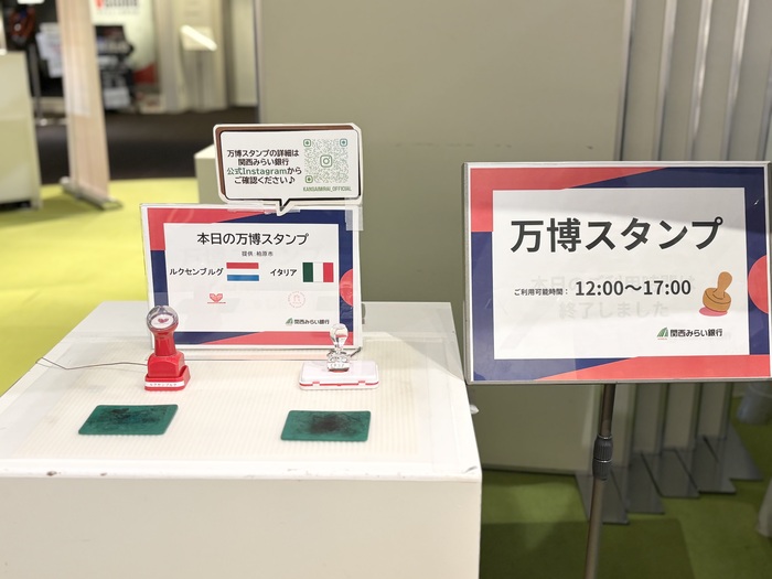 万博会場で実際に使用されていた、万博スタンプも用意されています。イベントの全期間中では、合計約10種類ほどが登場予定ですが、現時点でのイベント残り会期では、2種類のスタンプが登場します。12:00~17:00の利用時間に押す事ができます。