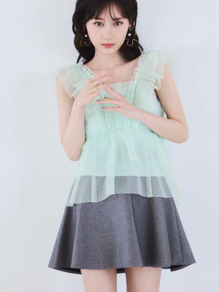 山下美月さんが着こなすことで、SNIDELらしい女性らしさとトレンド感がより引き立つルックに仕上がっています。