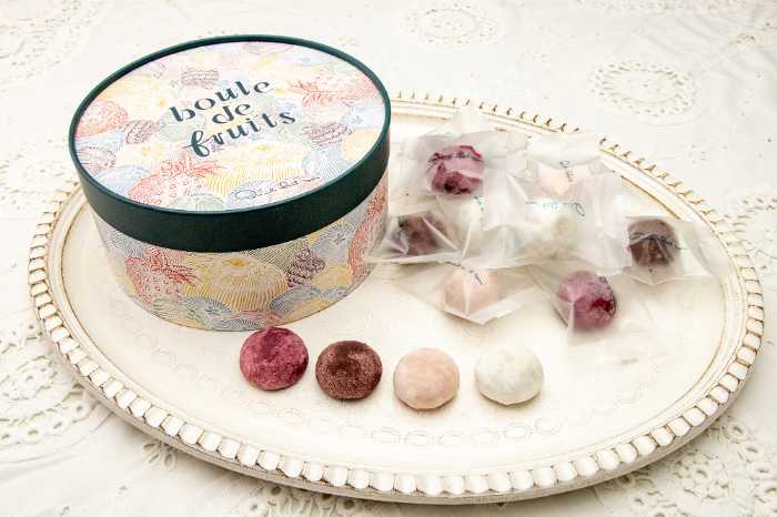 4種類の生地とフルーツパウダーの風味を楽しめる筒型ボックス入り焼菓子。