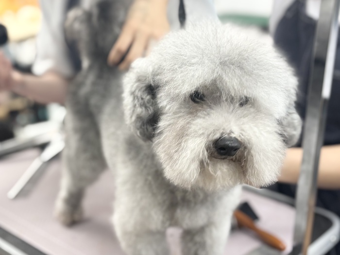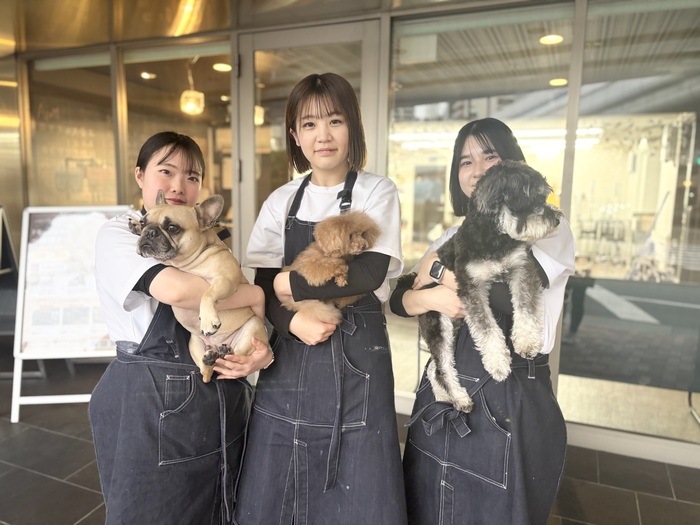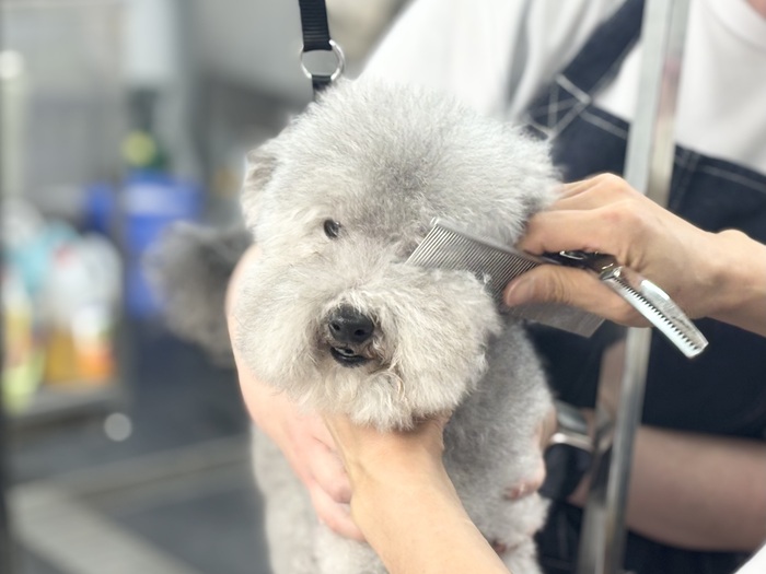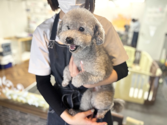 優しいスタッフさんたちに、綺麗にカットしていただきます。カットは好みのスタイルに合わせて相談が可能。この日は”ぬいぐるみ”みたいなカワイイスタイルでお願いしました。