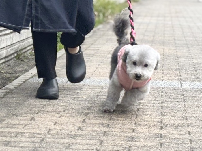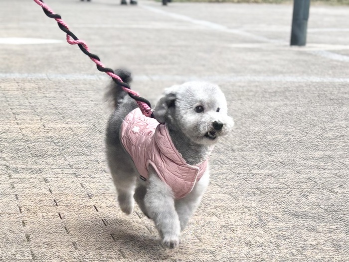 カットが終わり大変身!スタッフさんと一緒にホテル周辺をお散歩♪ホテルに預けている最中も、館内をのびのびと自由に歩きまわっているなか、お散歩もしていただけるのはとっても うれしいサービスです。