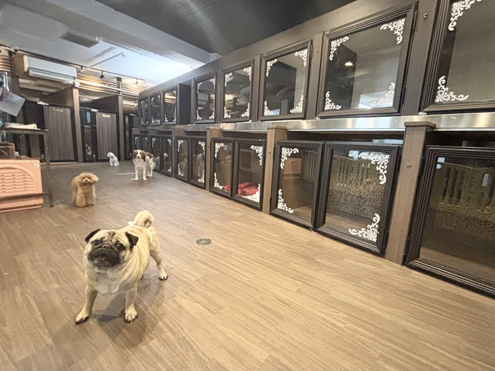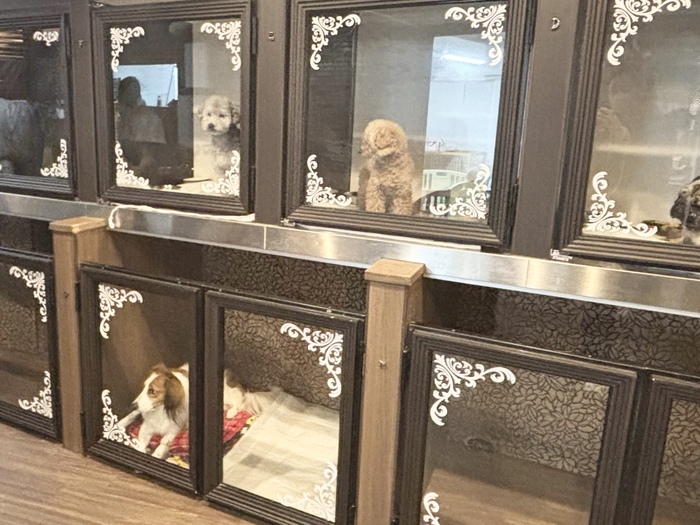ドッグホテル滞在中は、館内でのびのびとそれぞれのわんちゃんに1部屋ずつの個室が完備されています。お部屋がたくさんあるので、多頭飼いされている方にも安心です。