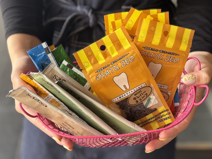 帰りには、ワンちゃん専用のジャーキーやデンタルケアのおやつなどのプレゼントをいただきました。お土産までいただき自宅での楽しみが一つ増えます。