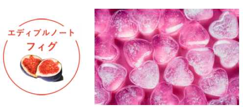 すべての香りに、食べ物をモチーフにしたキー香料「エディブルノート」を配合。もぎたて果実のようなフレッシュさと、ときめく甘さを楽しめるラインナップです。