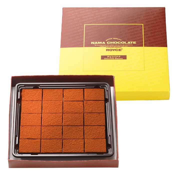 バナナの甘い香りとカカオの風味を2層で楽しめる生チョコレート。バナナピューレを使用したガナッシュとホワイトチョコベースのガナッシュが重なり、口の中でやさしくとろけます。