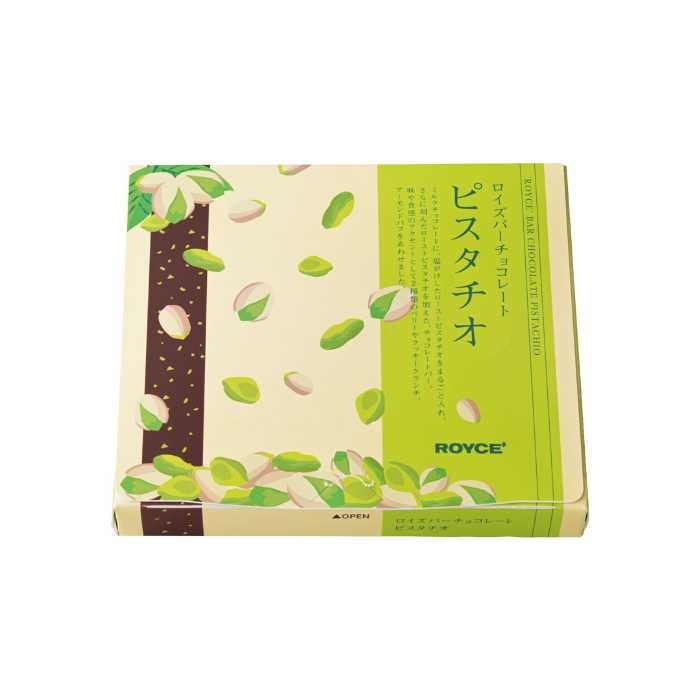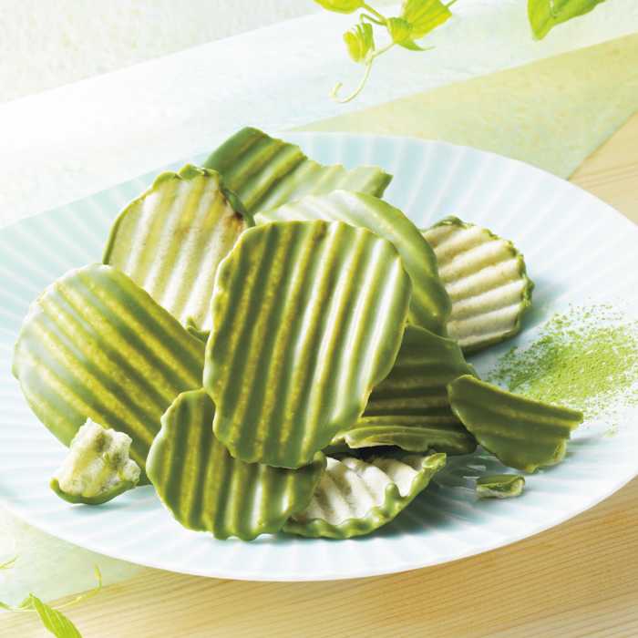 抹茶のほろ苦さとポテトチップの塩味が絶妙にマッチ。2種類の抹茶をブレンドしたチョコレートに、ピスタチオペーストを加えることでコクのある味わいに仕上げています。
