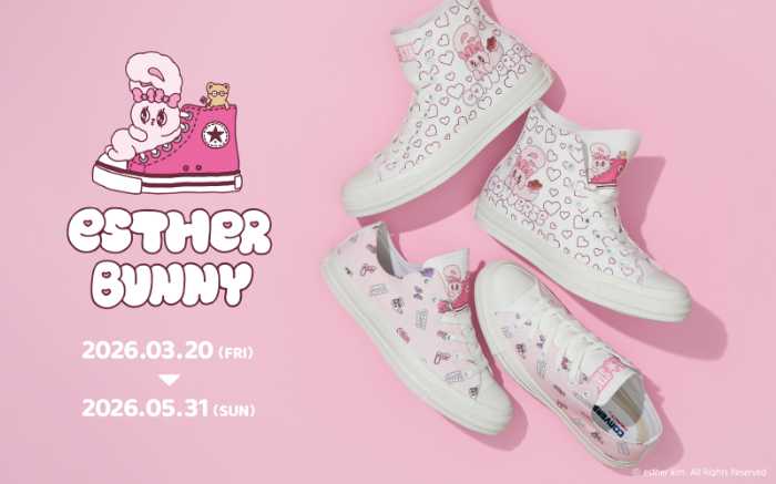 自分好みにアレンジできるコンバースの人気カスタマイズサービスに、ガーリーでポップな魅力が詰まった「エスターバニー」デザインが仲間入り♡見るたび気分が上がるキュートな世界観は、足元からおしゃれを楽しみたい女性にぴったり。自分だけの一足を作れる特別感にも注目です♪