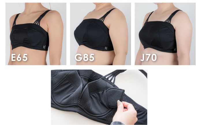 E65~K90までの42サイズ展開で、自分にぴったりのフィット感を見つけやすいのが魅力。サイズ調整パッド付きで、左右差にも対応します。