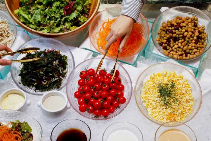 サラダバーや和食メニューも揃い、ランチとしても満足できる内容です。
