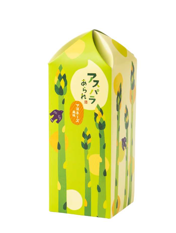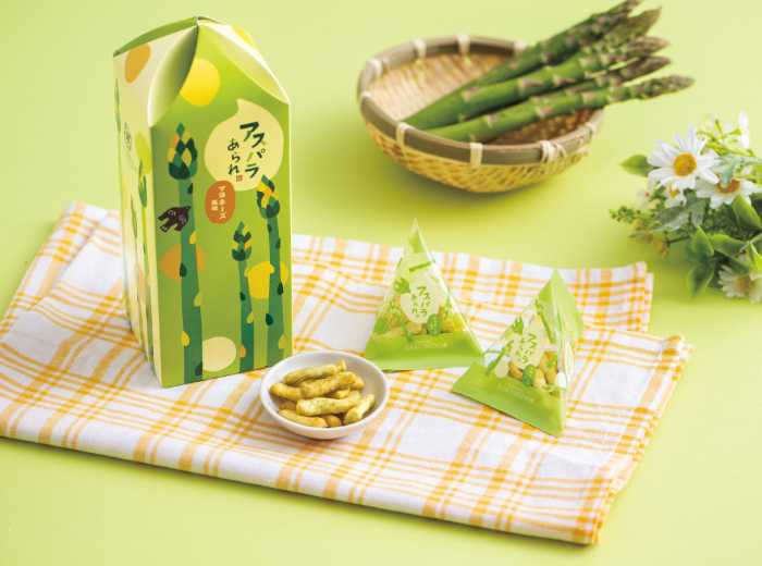 『アスパラあられ』は、春に旬を迎えるアスパラガスの風味を楽しめる季節限定商品。