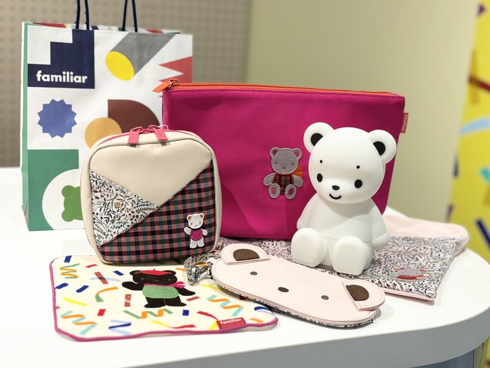 カラフルなファミちゃんのお顔のファスナーを開けると登場する「エコバッグ」に「チャーム」など、カジュアルな装いやキャンプなどにも最適な軽い素材を使用したアイテムも販売。