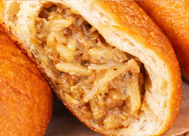 シャキシャキ食感のたけのこが楽しめる春らしいピロシキ。玉ねぎや春雨、豚肉とともに旨味が広がり、ほんのりピリ辛な味わいがクセになります。