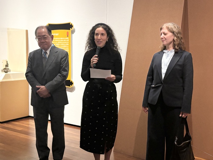 あべのハルカス美術館 館長 浅野 秀剛氏、ブルックリン博物館 巡回展シニア・マネージャー グウェン・アリアガ氏、ブルックリン博物館 レジストレーション及び収蔵品管理シニア・ディレクター ケイティ・ウェルティ氏が登壇。