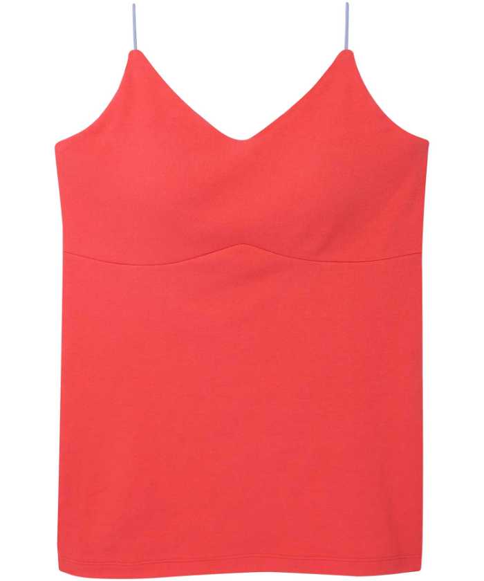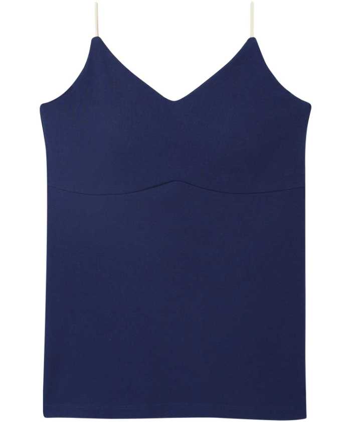 「マルチカラーカップ付きキャミ」は3,990円(税込)、カラーはネイビー(KO)とオレンジ(OR)、サイズはM。U字ラインがデコルテを美しく見せ、華奢なストラップがアクセントに。