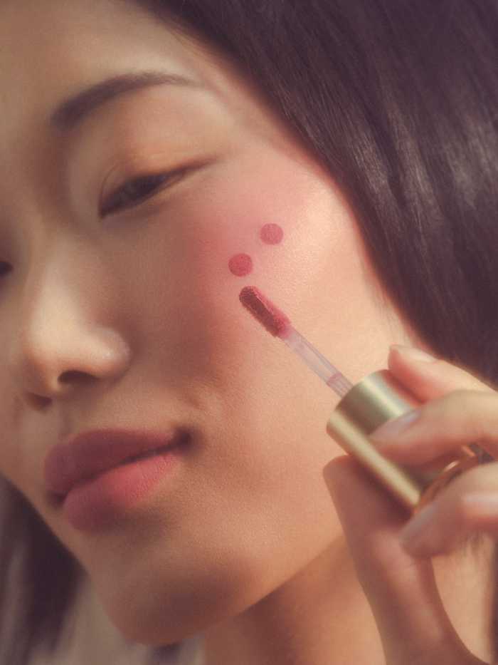 マルチユース処方で、リップにもチークにも使用可能。唇にはふっくらとしたボリューム感を与え、頬にはやわらかな血色感をプラスします。