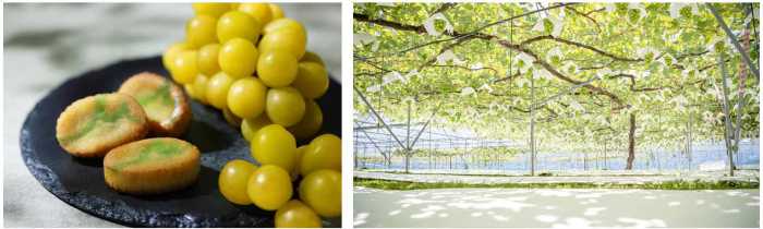 今回使用されているのは、樹の上で完熟するまで育てた“ゴールデンシャインマスカット”。一般的な緑色とは異なり、黄金色に輝くこの果実は、甘みと香りがぎゅっと凝縮された特別な存在です。