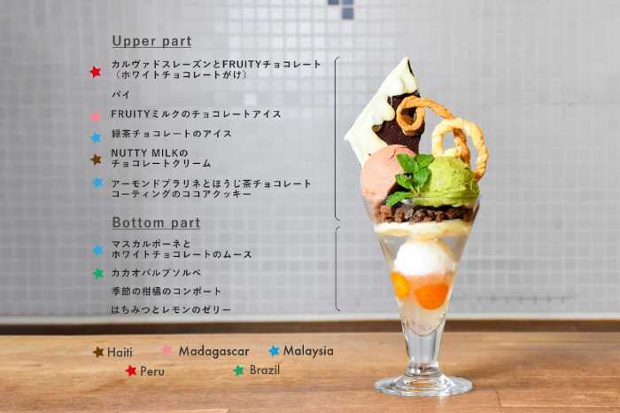 「Bean to Barチョコレートパフェ -CACAO JOURNEY-」は、3大陸5カ国のカカオを使用した特別なパフェ。