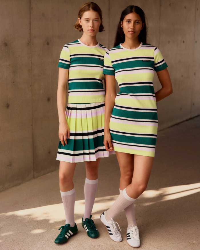 今回のコレクションは、長年愛されてきたスタイルを大胆にアレンジしたのが特徴。1960年代の象徴的なマリミニドレスを再解釈し、セットアップのように楽しめるデザインに仕上げています。
