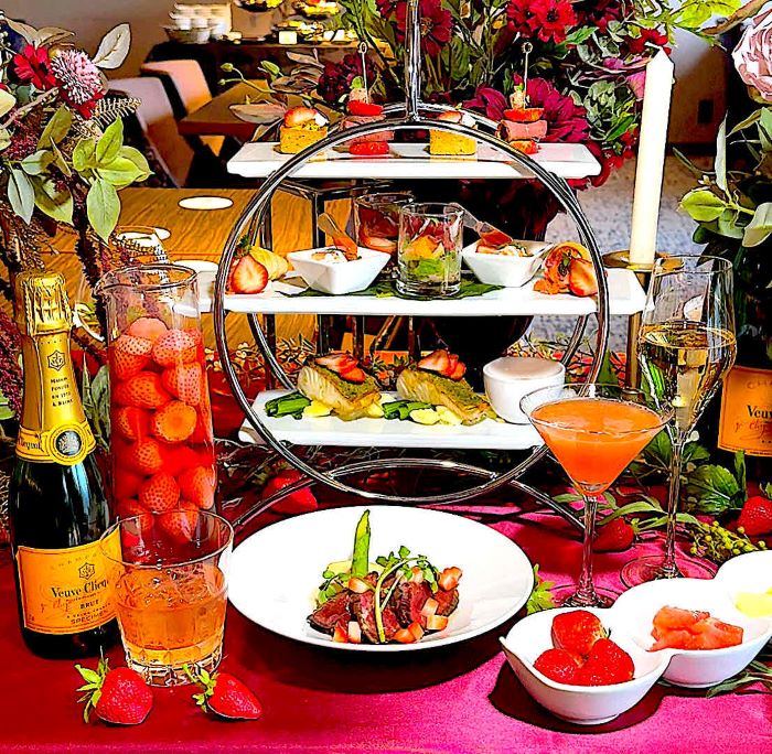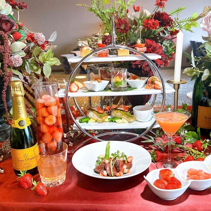 コートヤード・バイ・マリオット 新大阪ステーションでは5月31日まで、旬のいちごを主役にした春のご褒美ハイティー「STRAWBERRY ESSENCE」を開催中です。前菜からメイン、デザートまでいちごの甘酸っぱさを活かした多彩な料理が揃い、食べ放題のフレッシュいちごやフルーツをのせて作る「自分好みのパフェ」も魅力です。シャンパンや紅茶のフリーフローと共に、心華やぐ優雅な春のひとときをゆったりと過ごしませんか。